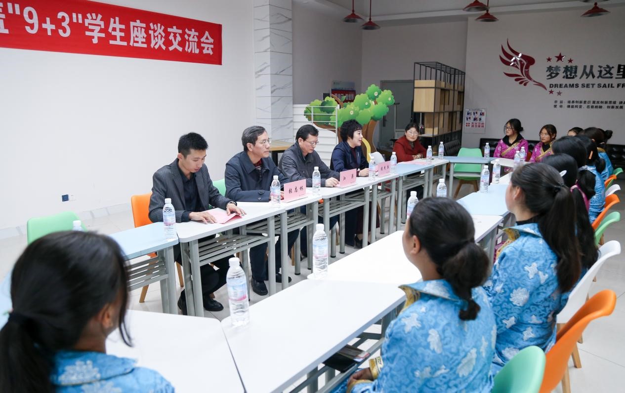 “9+3”办公室雷德凤老师就“9+3”班级学生招生、学习、生活和管理情况以及9+3班级老师情况进行了汇报,她表示将继续坚持以学生为本,做好学生教育,管理和服务工作。