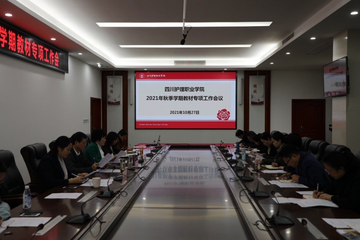 为进一步贯彻落实党中央、国务院《关于加强和改进新形势下大中小学教材建设的意见》、教育部《职业院校教材管理办法》和省教育厅职业教育“十四五”规划教材建设工作会议精神,10月27日,我院在成都校区召开了2021年秋季学期教材专项工作会,学院党委书记江涛、院长张先庚、副院长姚永萍出席会议,学院督导专家、教务处及各系部负责人、教学科研科科长等相关人员参加会议。会议由姚永萍副院长主持。
