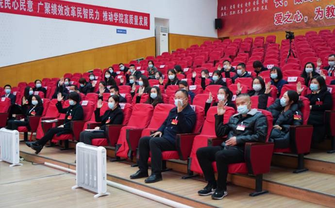 2021年11月22日,beat365官方网站第二届职代会暨工代会第二次全体会议在成都校区召开。50名职代会正式代表、35名列席代表齐聚一堂,听取院长工作报告,审议学院绩效工资分配实施方案。学院工会主席曾孝鹏主持大会。