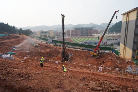2号学生公寓区域桩基工程施工现场