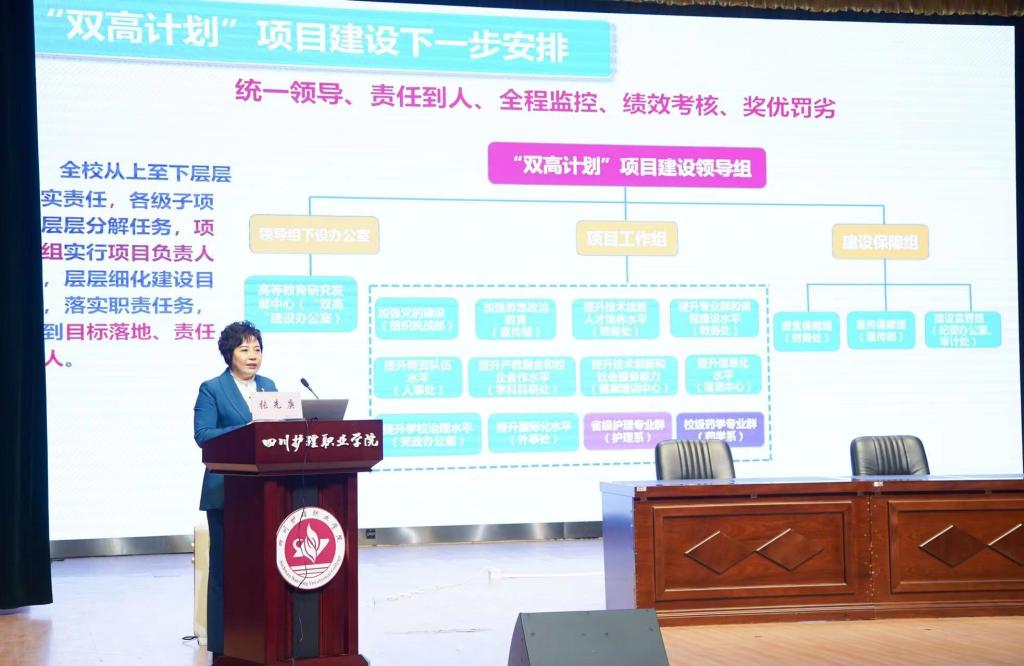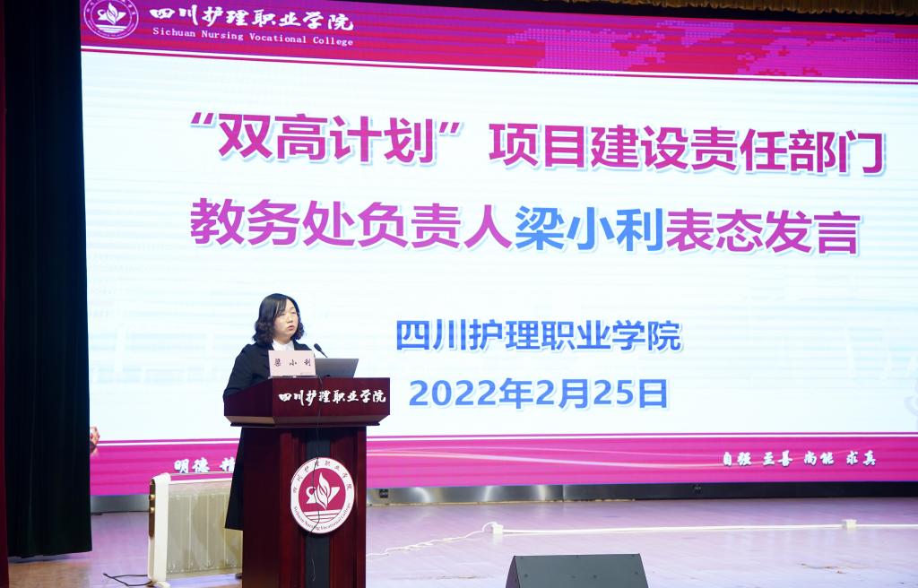 教务处和护理系负责人作为项目建设责任人代表在会上做表态发言,将严格定好“时间表”,画好“施工图”,实行挂图作战,以最高的政治站位、最强的责任担当、最佳的精神状态、最实的工作举措,用心谋事、尽责干事、合力成事,确保“双高计划”建设任务抓到细处、做到深处、落到实处。