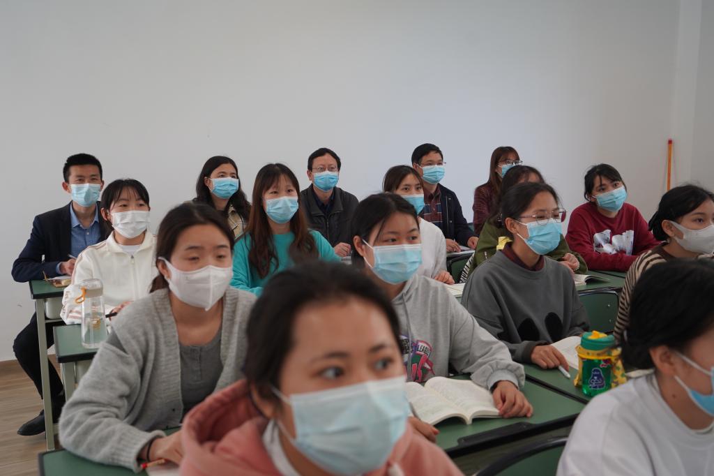 为进一步加强和推进学院思想政治理论课建设,深入了解思政课教育教学情况,2022年4月8日,学院党委书记江涛,党委委员、副院长陈劲松走进思政课课堂,听取了新教师王虹讲授的《思想道德与法治》。思政部党总支书记宋宓娟、学工部副部长申洋等一同听课。