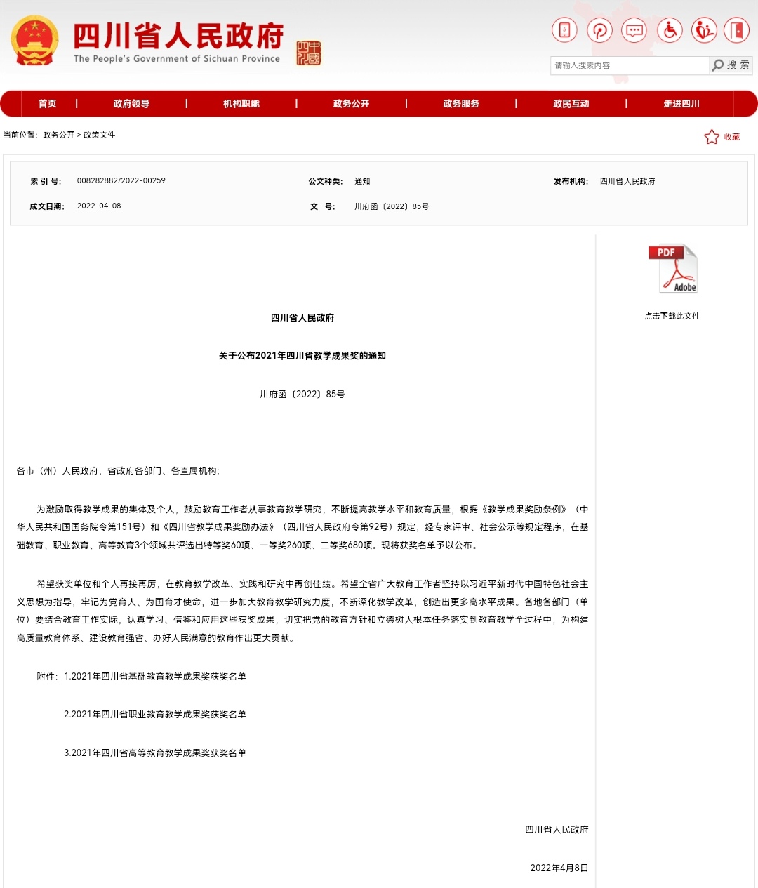 据悉,四川省教学成果奖每四年评选一次,此次评选活动于2021年7月启动,根据《四川省教育厅关于开展2021年四川省教学成果奖评审工作的通知》(川教函〔2021〕270号)和《四川省教育厅关于做好2021年四川省职业教育教学成果奖励工作的通知》(川教函〔2021〕301号),经省政府同意,省教育厅组织评选,共评选出职业教育特等奖15项,一等奖80项,二等奖200项。