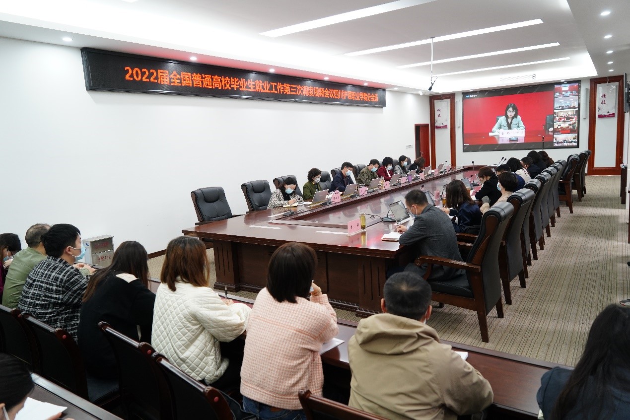 为深入贯彻党中央、国务院“稳就业”“保就业”决策部署,抓好当前毕业生就业冲刺工作,4月19日下午,教育部2022届全国普通高校毕业生就业工作第三次调度视频会议暨学院2022届毕业生第四次就业工作专项会以网络视频形式在成都、德阳两校区同步召开。学院党委书记江涛、院长张先庚,副院长姚永萍,副校长卢燕出席会议。招生就业处、教务处、保卫处、各系部主要负责人及专兼职辅导员共计70余人参加会议。会议由陈劲松副院长主持。