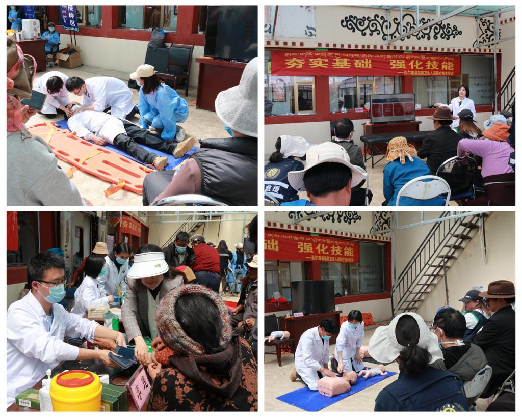 与此同时,由学院民主党派代表、党外知识分子代表及系部医护专家组成的团队在班佑村开展的健康服务活动拉开了帷幕。该活动得到县人民医院及各乡镇卫生院的积极参与和大力支持,医护专家们为当地群众开展健康评估、保健按摩、艾灸针疗等常规诊疗服务,根据农牧民身体情况,现场发放价值5000余元的药品及100册《高原常见病科普手册》,活动得到农牧民一致好评,现场座无虚席。同时,学院3名医护专家分别对当地医疗卫生人员开展心肺复苏、海姆立克法、快速检伤分类和脊柱板的使用、大骨节病、氟骨病的常见针灸治疗等专题培训。