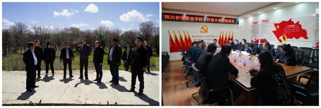 5月10日至13日,由学院党委书记江涛带队,学院党委副书记张志林,党政办、组织统战部相关负责人、系部专职组织员、医护专家等9人组成调研团队,赴学院定点帮扶点班佑村开展乡村振兴调研工作。若尔盖县副县长杨勇及县乡村振兴局、县委组织部、县卫生健康局、驻村工作队员陪同调研。