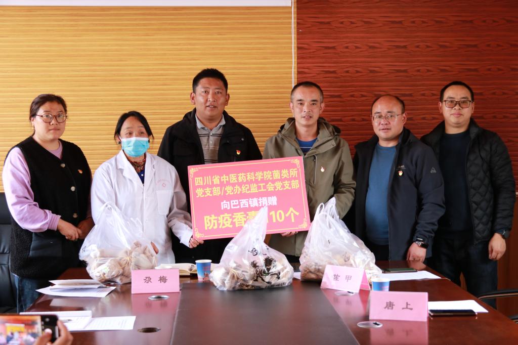 活动伊始,李述明副书记代表四川省中医药科学院向学院帮扶的若尔盖县巴西镇捐赠防疫香囊并就下一步共同推进若尔盖县康养中心建设进行沟通交流。巴西镇党委书记任永富在线上接受捐赠并致谢。