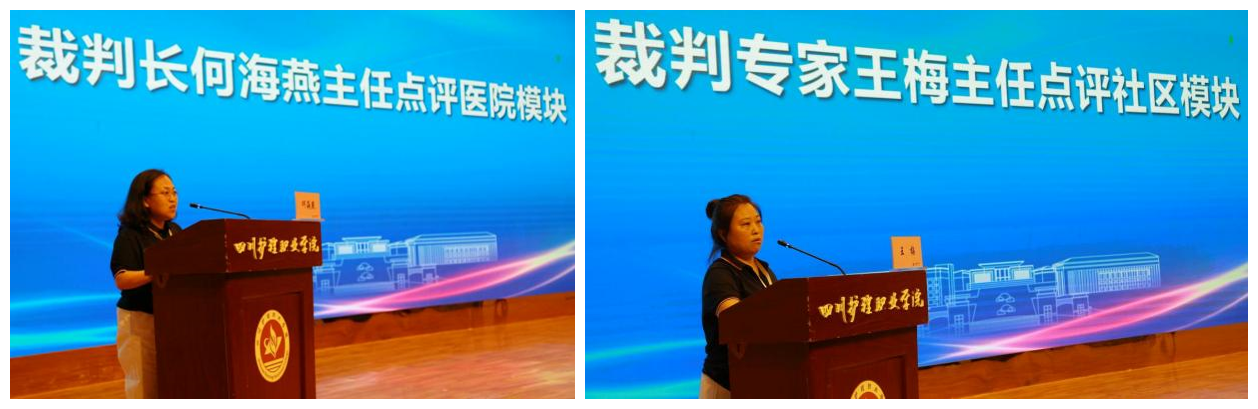 大赛点评会上,裁判长和裁判专家分别对医院模块、社区模块进行了点评,对参赛选手的专业形象、人文关怀、操作技能和沟通能力给予了充分肯定,并对个别环节给予指导建议,包括照护评估更全面、照护计划更具体、照护操作更务实、沟通宣教更有针对性、海报制作更简洁以及更加注重自身的职业防护等。