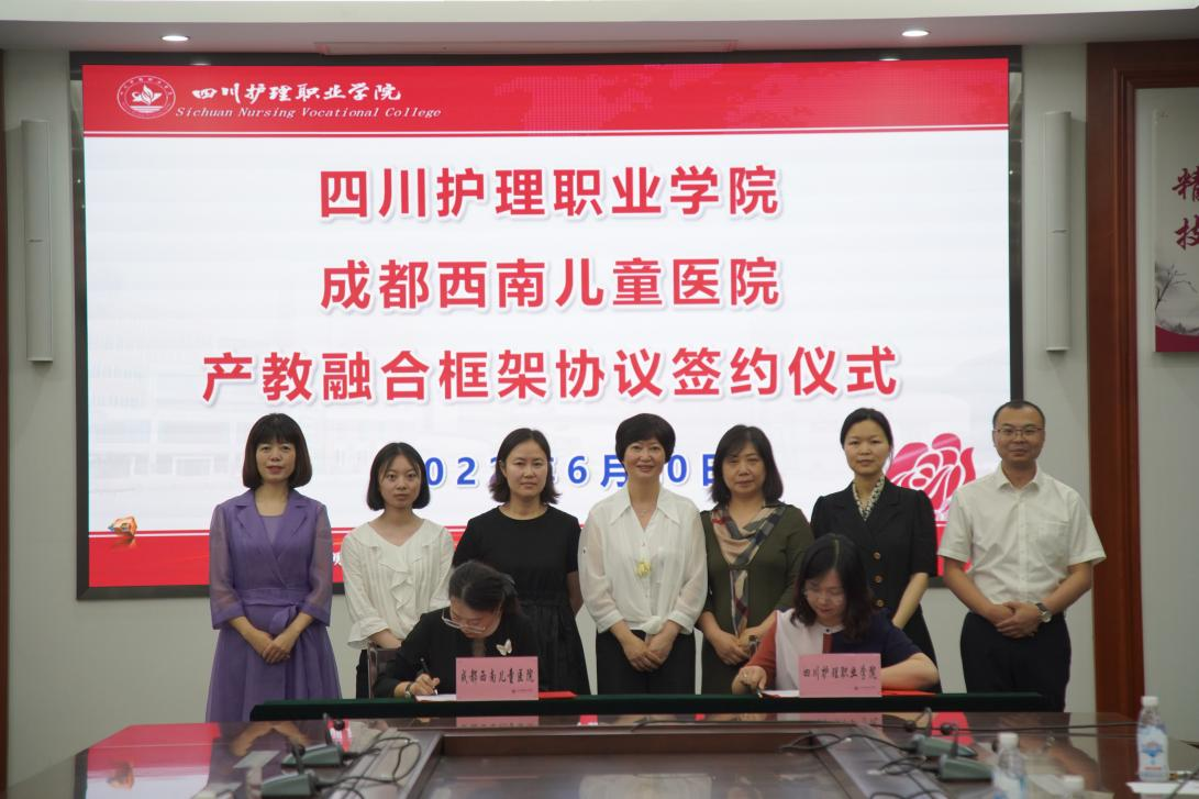 为加强校企合作、深化产教融合,精准培养高质量专业性人才,6月10日下午,我院与成都西南儿童医院等三家单位举行合作签约仪式。学院院长张先庚、副院长陈劲松以及成都西南儿童医院院长高瑶、成都谷源健康咨询有限公司人力行政总监陶羽、成都尚膳月禧健康管理有限公司总经理魏丹出席签约仪式。相关部门、系部负责人参加仪式。