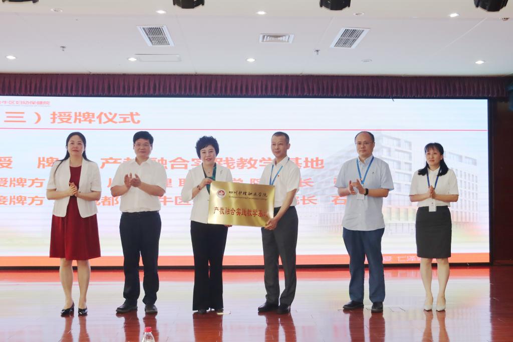 为深入贯彻落实全国职业教育大会精神和《国家职业教育改革实施方案》,加强校企合作、产教融合,推进学院高质量发展,6月13日,我院产教融合实践教学基地授牌仪式在成都市金牛区妇幼保健院隆重举行。学院院长张先庚、副院长陈劲松、姚永萍、成都市金牛区妇幼保健院党委书记杨刚、院长石浩、副院长雷迅、总会计师贾燕出席授牌仪式,学院相关职能部门负责人和医院中层干部、职能科室全体工作人员参加授牌仪式。仪式由雷迅副院长主持。