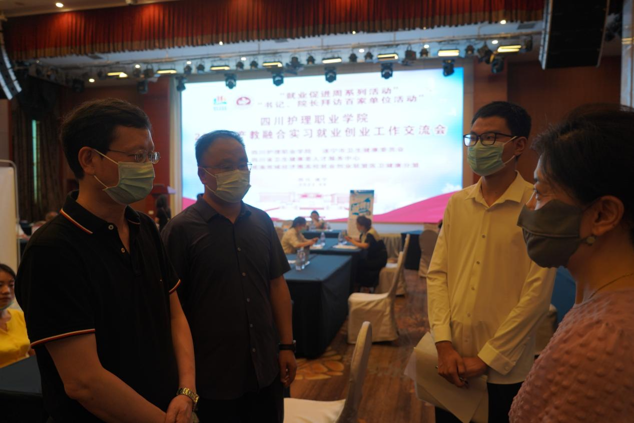 学院党委书记江涛、四川省卫生健康委员会人才服务中心副主任廖礼奎与遂宁市政府副秘书长谭恢军、遂宁市卫生健康委员会党组书记、主任赵维强、遂宁市各区县卫健局及26家医院代表等进行交流。交流会由学院党委委员、副院长陈劲松主持。