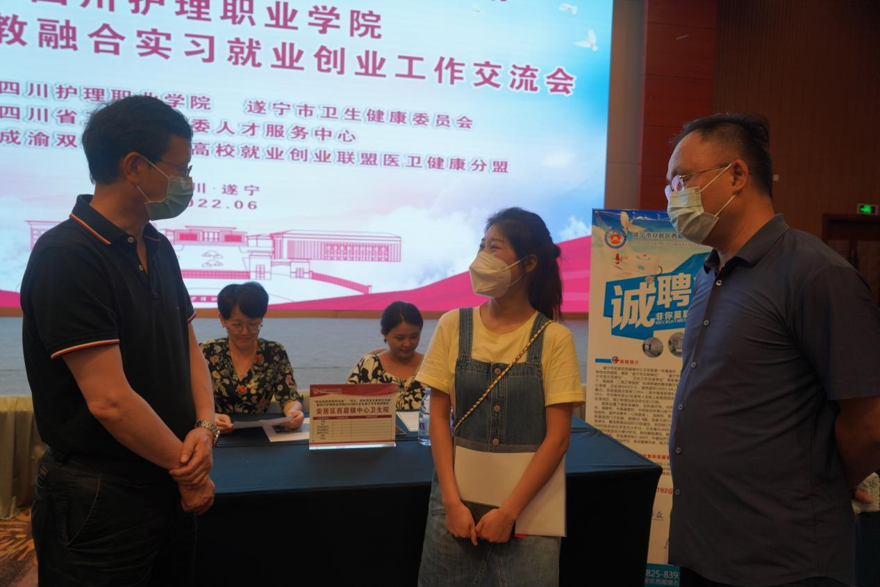 为全面落实习近平总书记关于毕业生就业的重要指示精神,抓住毕业生离校前的关键期和冲刺期,进一步挖掘岗位资源,做实做细就业指导服务,6月17日,学院联合四川省卫生健康委人才服务中心、遂宁市卫生健康委举办了2022年产教融合实习就业创业工作交流会暨2022届毕业生遂宁市专场招聘会。