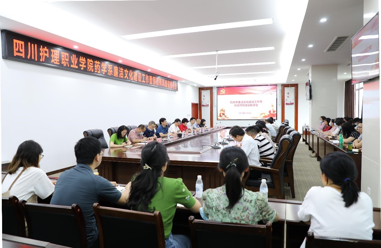 为进一步推动系部全面从严治党工作和师德师风建设落地落实,6月16日,学院药学系廉洁文化建设工作暨师德师风建设推进会在成都校区召开。党委书记江涛,党委副书记、院长张先庚,党委委员、副院长陈劲松,党委委员、副院长姚永萍,党委副书记、纪委书记张健,相关职能部门负责人及药学系全体教职工参加会议,会议由纪委书记张健主持。
