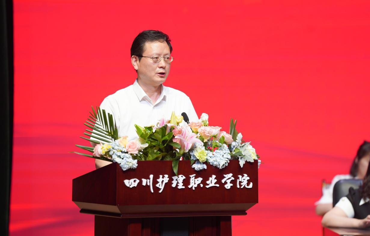 典礼最后,党委书记江涛对即将离开川护的全体毕业生提出三点希望:一是心怀家国,勇于奉献担当。希望同学们牢记“明德、精技、济世、创新”的校训,自觉听从党和人民召唤,珍惜省里今年特设的3万个公共卫生特别服务岗位,勇于到基层一线,自觉挑起卫生健康重任,争做自强不息、勇毅前行的时代奋进者、开拓者、奉献者,助力成渝地区双城经济圈建设,为四川添彩,为祖国的卫生事业贡献力量。二是立德修身,锤炼高尚品格。勉励同学们加强自身修养、陶冶高尚情操,自觉抵制不良风气的侵蚀和虚名浮利的诱惑,明大德、守公德、严私德,成为一名品德高尚、技术精湛的卫生健康人才。三是勤学善思,练就过硬本领。希望同学们一定要珍惜光阴、不负韶华,把学习作为一种精神追求、一种生活方式,练就过硬本领,紧跟时代发展大势,争当事业闯将,在服务人民卫生健康中创造非凡业绩。
