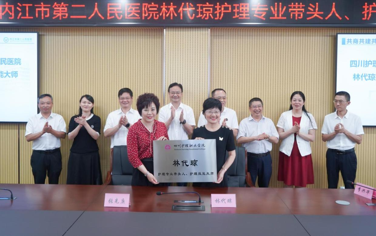 张先庚院长对内江市第二人民医院的改革发展表示肯定,对护理专业带头人、护理技能大师林代琼主任护师在护理领域的学术造诣与业绩表示赞赏,对该院护理临床教学的创新举措与示范引领表示赞扬。张院长简要介绍了beat365官方网站与产教融合背景与意义,她指出,在党的生日这天举行产教融合框架协议签约暨实践教学基地授牌仪式,意义非凡,这是院校双方贯彻落实国家职教大改革的重要举措,也是用实际行动庆祝建党101周年的体现,双方要以此为契机,整合优质资源,加快在人才培养、学科发展、科研创新、师资团队、培训就业等多方面、全方位、深层次融合,实现“资源共享、人才联动、互利共赢”目标,携手打造产教融合、校企合作新典范,努力培养更多的高素质卫生健康技术技能人才,为“健康四川”“健康中国”做出更大的积极贡献。副院长姚永萍详细介绍了学院近年来在人才培养、专业建设、产教融合、服务社会、争创“双高”等方面抢抓机遇、锐意改革所取得的显著成效以及学院未来“1235”发展战略。