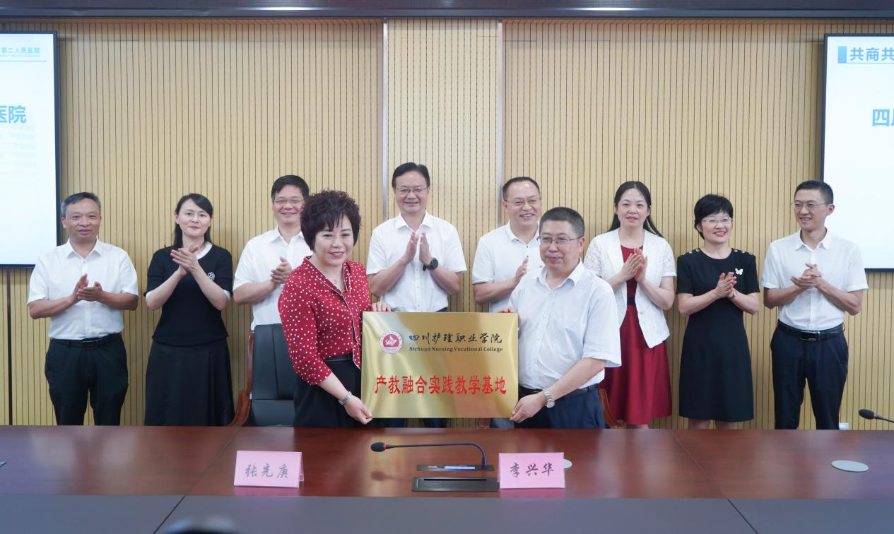 为深入贯彻落实《中华人民共和国职业教育法》和全国职业教育大会精神,深入推进产教融合,培养适应新时代卫生健康高素质技术技能型人才,7月1日,学院与内江市第二人民医院举行产教融合框架协议签约暨实践教学基地授牌仪式。学院院长张先庚、副院长陈劲松、副院长姚永萍、内江市卫生健康委员会副主任印永彬、内江市第二人民医院党委、行政领导班子成员出席仪式,学院和医院相关职能部门、科室负责人参加仪式。仪式由内江市第二人民医院副院长蒋鸥主持。