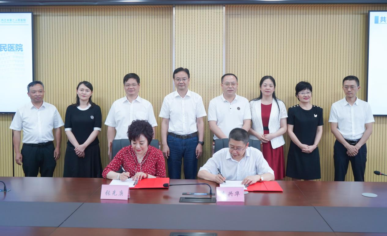 内江市第二人民医院党委书记杨盛国向张先庚院长一行莅临医院指导工作致以衷心的感谢,他表示,本次产教融合协议的签订是一个重要的里程碑,预示着院校双方在“产教融合”道路上迈出了更为坚实的一步,要按照共建平台、共享人才、共谋发展、共享成果的原则,多维度、全方位、深层次务实推进院校教学、学科发展、科研创新及人才队伍建设,实现优势互补、资源共享,助推院校高质量快速发展,实现院校“双赢”,为四川卫生医疗事业发展作出积极贡献,以优异成绩迎接党的二十大胜利召开!