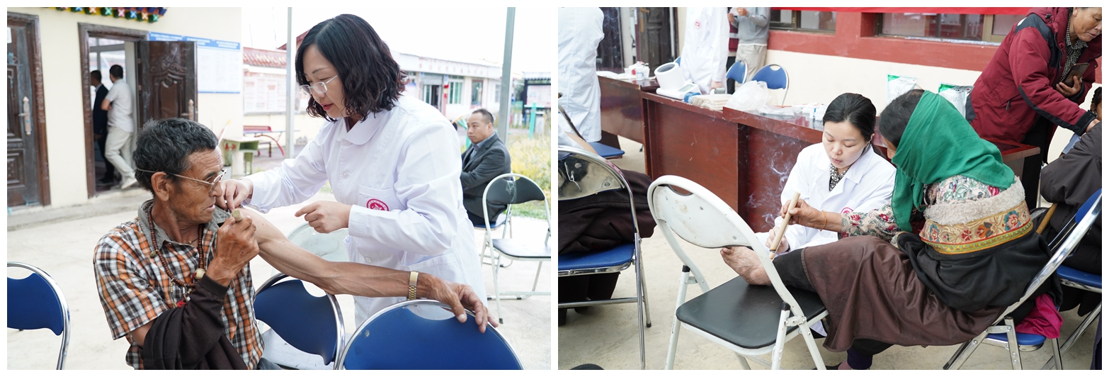 学院专家指导大骨节病村民做艾条灸