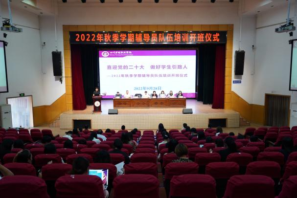 为深入学习贯彻习近平新时代中国特色社会主义思想,加强辅导员队伍建设,提升辅导员育人能力和水平,9月28日下午,学院举办2022年秋季学期辅导员队伍培训开班仪式。学院党委书记江涛,党委副书记、院长张先庚出席开班仪式,学生工作部、各系主要负责人和全院学工管理老师及全体专兼职辅导员共计60余人参加活动。仪式由学院党委委员、副院长陈劲松主持,采取线上线下相结合的形式进行。