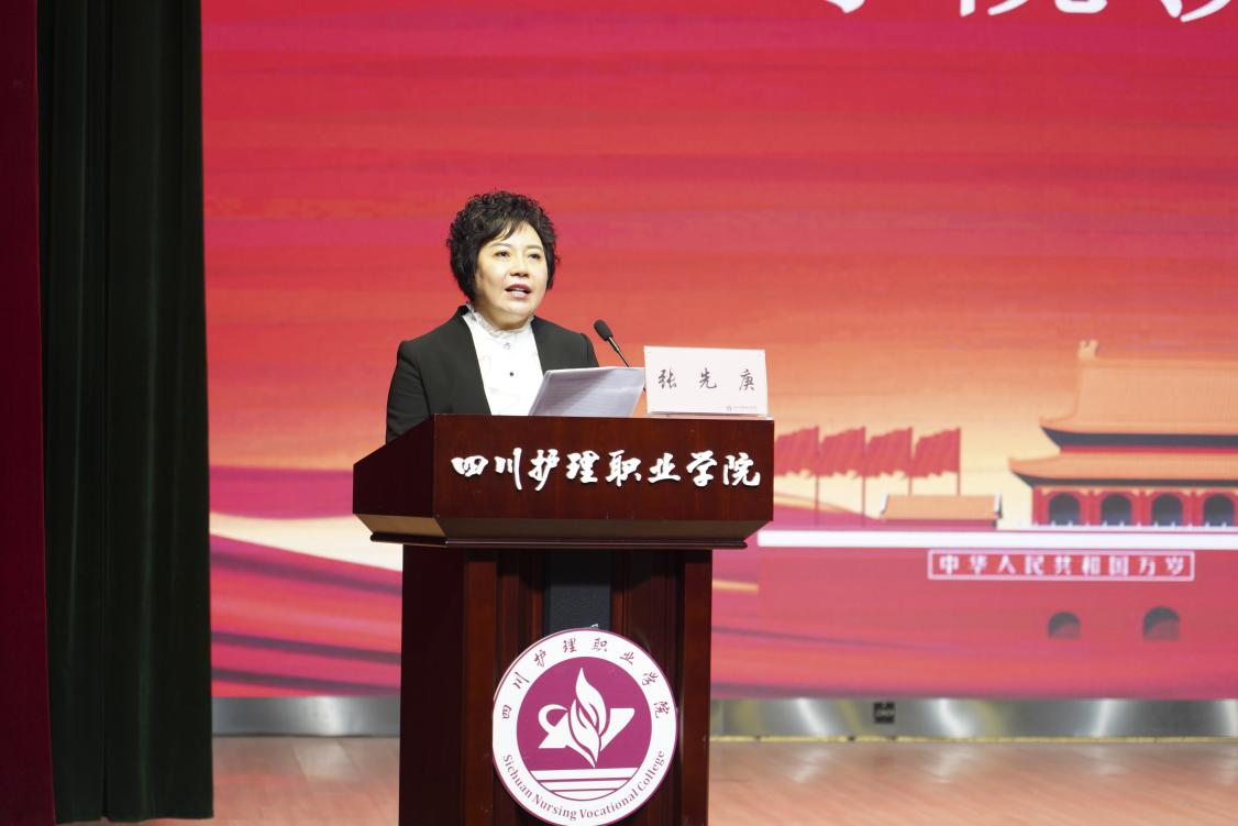 张先庚院长在赛前致辞。她指出,重温“一二·九”运动宝贵精神财富,是为了让广大青年学生从历史中汲取前行发展的行动力量。她向全院青年学子提出三点希望:一是坚持党的领导,听党话、跟党走。希望同学们坚持爱国和爱党、爱社会主义相统一,培养爱国之情、砥砺强国之志、实践报国之行,志存高远,脚踏实地,成为德智体美劳全面发展的新时代大学生。二是强化奋斗精神,练就过硬本领。希望同学们树立梦想从学习开始、事业靠本领成就的观念,把学习作为首要任务,理论联系实际,把“学”用实践和创造外化为“行”,立志扎根基层无私奉献。三是立足专业,担当作为,践行卫生报国初心。希望同学们心怀大爱、志存高远,积极用“健康梦”托起“中国梦”,把家国情怀贯穿学习全过程、融入成长成才全链条、汇入卫生健康事业的追求中,争做堪当民族复兴重任的新时代职教大学生。