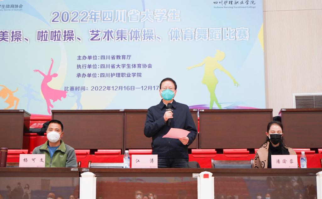 最后,江涛书记宣布2022年四川省大学生健美操、啦啦操、艺术集体操、体育舞蹈正式开始。