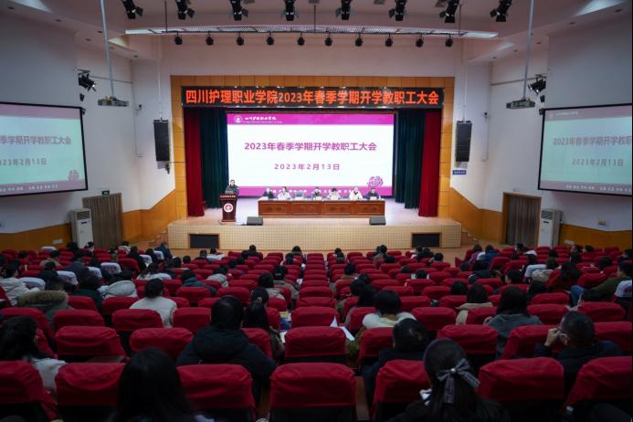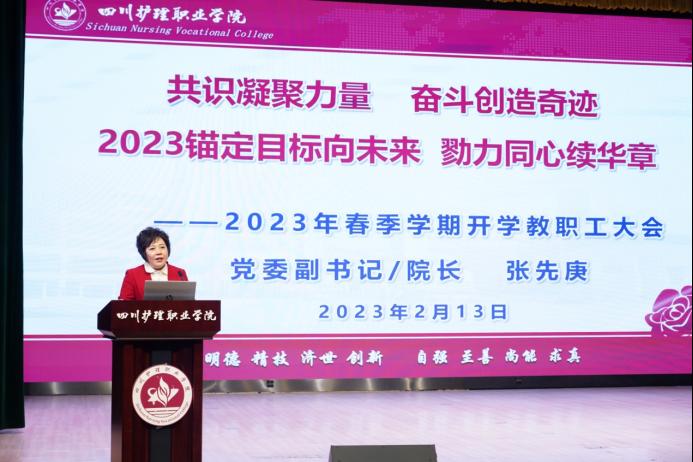 本次会议是调整状态的收心会,也是全院上下的沟通会,更是明确目标任务、凝聚共识与鼓舞士气的大会。2023年,学院将以习近平新时代中国特色社会主义思想为指导,深入学习贯彻党的二十大精神,积极践行“五爱五尽”家校情怀,大力推进“五大强校”战略,为学校高质量发展踔厉奋发、勇毅前行,奋进新征程,建功新时代,铆足精气神、跑出加速度,打造卫生健康职业教育新标杆,扛起职业教育与卫生健康报国使命,再上新台阶、再创新辉煌!