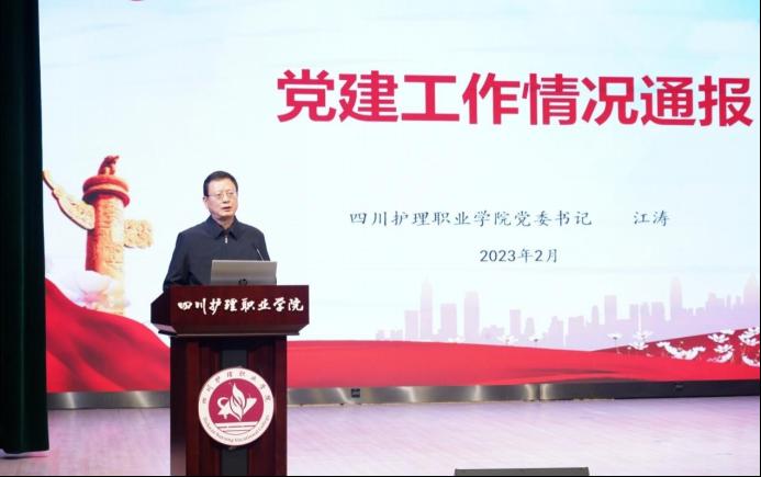 会议第一阶段,学院党委书记江涛作寒假党建工作情况通报,并安排了春季学期相关重点工作。江书记指出,新学期有新气象,新征程有新作为,希望全体干部职工全面深入学习贯彻党的二十大精神和省委十二届二次全会精神,团结拼搏,勇毅前行,对标竞进、争创一流,大力推进“双高”建设,用实干和担当谱写中国式现代化的川护新篇章。