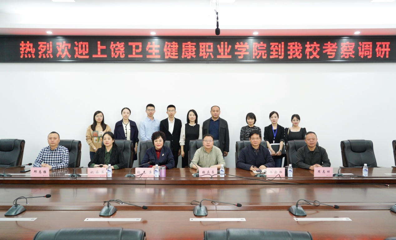 张庆良校长就上饶卫生健康职业学院基本建设、师资队伍、人才培养等方面情况进行了介绍,对我院近年来取得的办学成果予以高度评价。他表示,学院在顶层设计、内部治理、人才培养、师资队伍建设等方面的经验,对上饶卫生健康职业学院这所新建同类院校具有重要的借鉴、启发意义,希望双方进一步加深了解,搭建学习交流平台,分享高职院校建设发展经验。