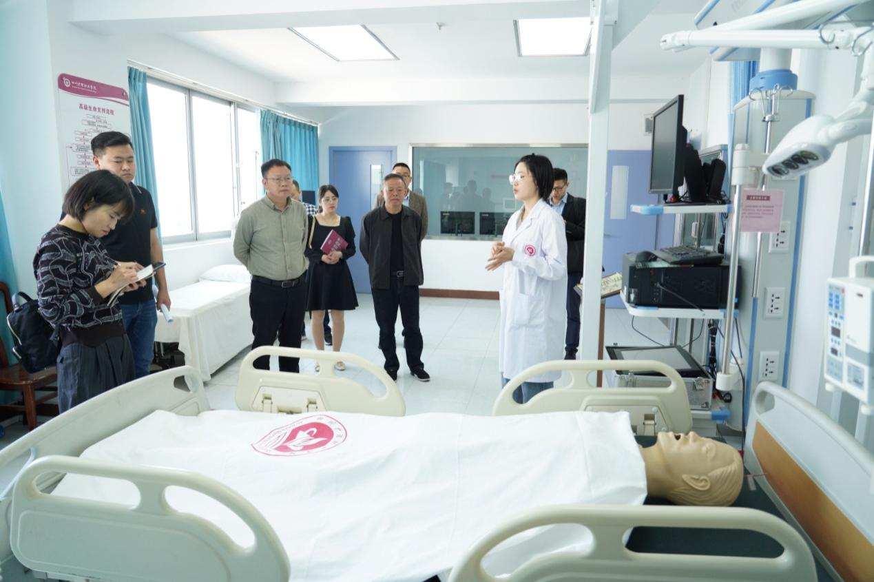 会后,张庆良校长一行先后实地考察了学院康复实训大楼、第二实训大楼、综合楼实训中心等,对学院智慧实验室、虚拟仿真实训系统的建设高度赞赏。双方各职能部门就内部治理、人才培养、师资队伍建设等内容进行了深入交流和探讨。