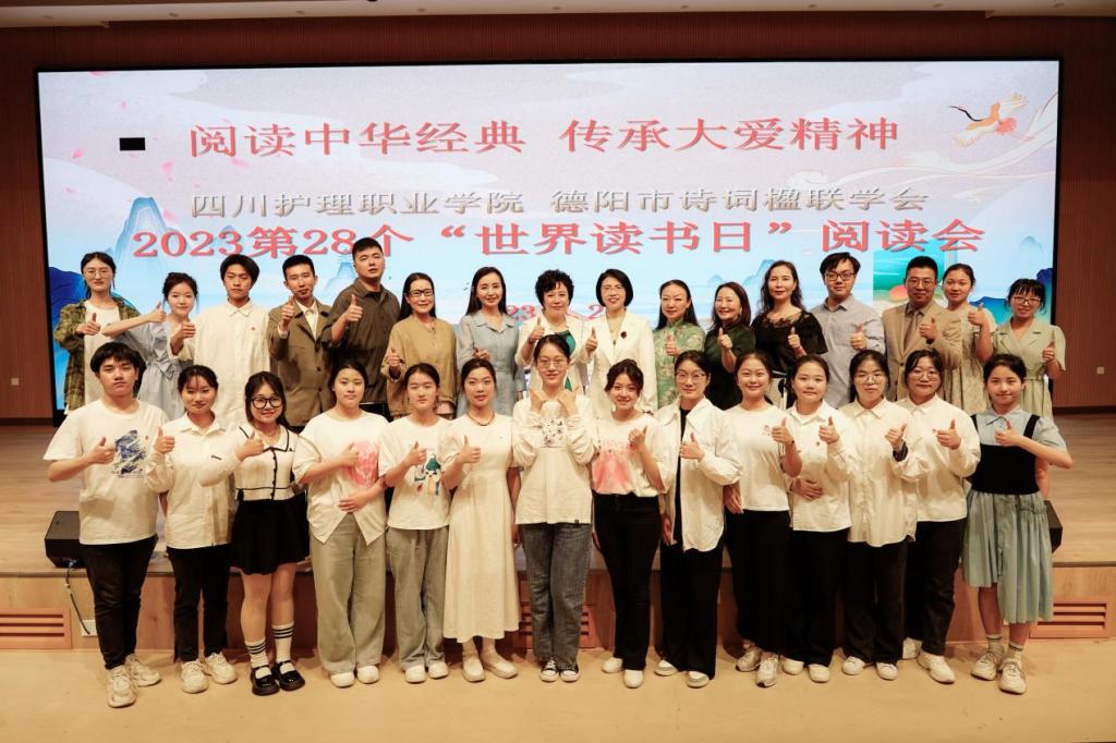 为深入学习贯彻党的二十大精神,推进书香校园建设,在第28个“世界读书日”到来之际,4月20日下午,学院邀请德阳市诗词楹联学会在德阳校区演艺大厅共同举办了“阅读中华经典 传承大爱精神”—第28个“世界读书日”阅读会。学院院长张先庚,德阳市委统战部一级调研员、德阳市诗词楹联学会会长涂惠及会员代表,学院学生工作部、护理系等负责人、教师与学生代表共300余人参加活动。