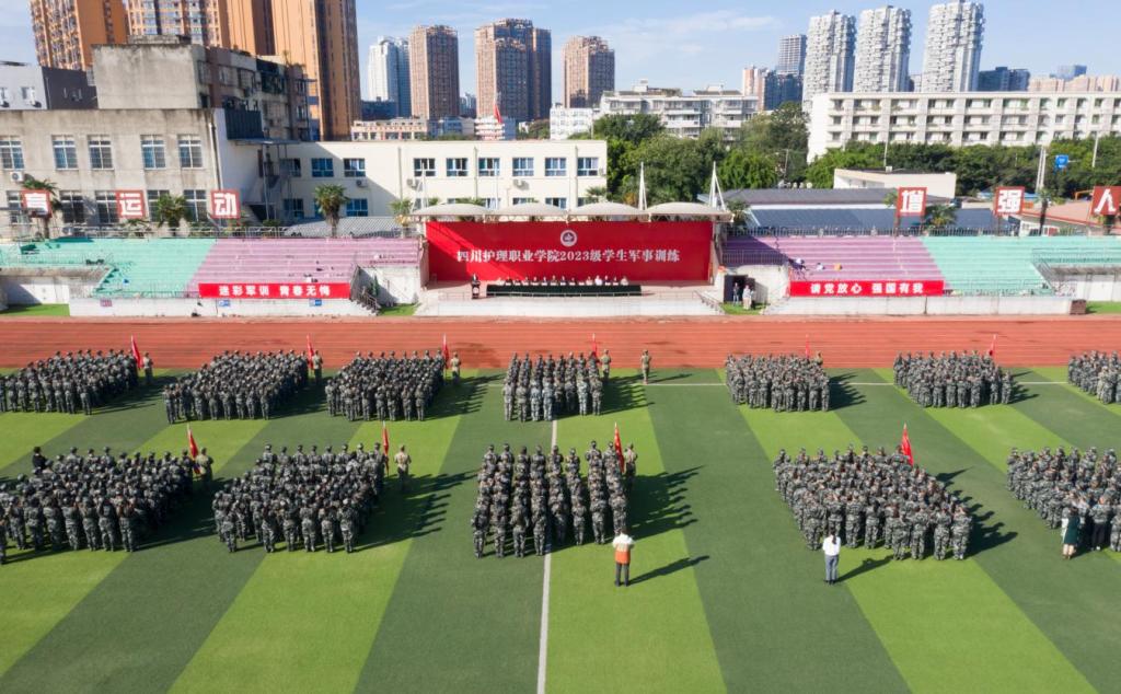 10月7日,在深入开展学习贯彻习近平新时代中国特色社会主义思想主题教育和党的二十大精神之际,我院2023级新生军训动员大会暨开训仪式在成都、德阳两校区举行。学院党委书记江涛、院长张先庚、党委副书记彭博文、副院长陈劲松、纪委书记罗小强、中国人民解放军78167部队副参谋长魏杨倬、德阳市旌阳区人民武装部政治委员蒲海涛出席,学院相关职能部门负责人、各系党总支书记、辅导员、2023级4000余名参训新生及全体承训教官参加。开训仪式由副院长姚永萍主持。