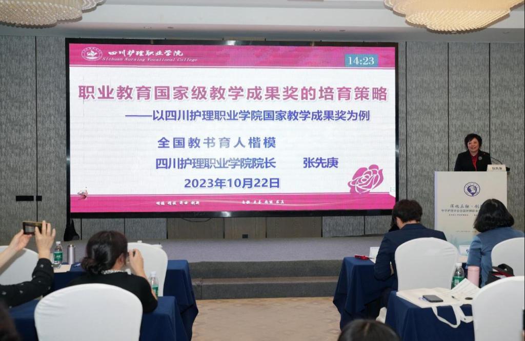 10月21日,学术交流会上,中华护理学会理事长吴欣娟、中华护理学会护理教育专业委员会主任委员姜小鹰等全国知名护理专家作精彩报告。张院长受邀作题为“探索现代职业教育体系建设,构建高职护理新生态”的主旨报告,围绕现代职教体系建设改革背景意义、推进现代职教体系建设改革举措、构建高职护理新生态三个方面进行阐释,受到与会代表的一致好评。