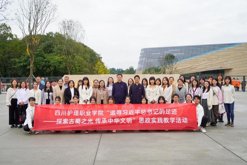 为深入贯彻落实党的二十大精神和习近平总书记来川视察重要指示精神,感受古蜀文明在中华文明起源发展中的重要性,提高师生文化素养,增强文化自信和民族自豪感,10月19日,思政部组织师生前往三星堆博物馆开展“追寻习近平总书记的足迹——探索古蜀之光 传承中华文明”思政实践教学活动。学院党委书记江涛、副院长陈劲松,宣传部、学生工作部、护理系、药学系、基础部、康复技术系相关负责人及学生代表、思政专兼职教师共43人参加本次活动。