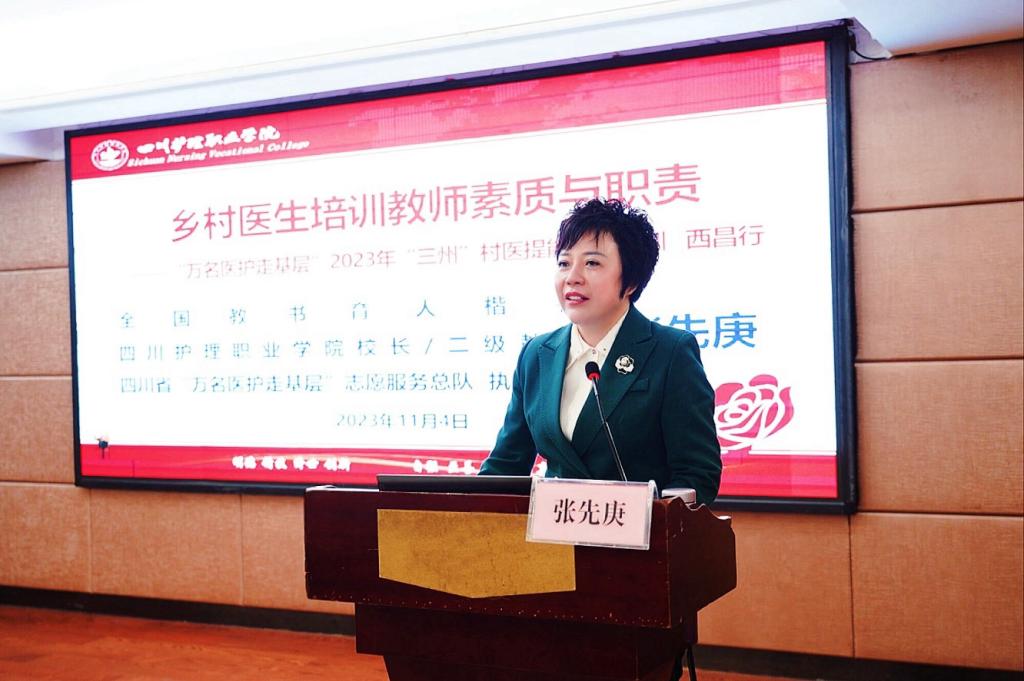 为进一步推进“三州”基层卫生人才队伍建设,在四川省卫生健康委基卫处的指导下,学院于11月4日至6日在凉山州西昌市举办2023年“三州”村医提能师资培训班,来自甘孜州卫生学校,阿坝州职业学院,凉山州第一、第二人民医院和中西医结合医院的60名学员参加本次培训。