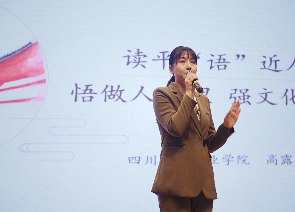 高露瑶以“读平‘语’近人 悟做人道理 强文化自信”为题,分享了《平“语”近人—习近平总书记用典》一书。她从习近平总书记在师生座谈会以及大国外交场合的重要演讲时引用的华章佳句展开,结合学院脱贫攻坚、乡村振兴、抗击新冠疫情典型事迹,以及国家对外援助项目和四川援外医疗举措,生动分享了如何践行“德”与“行”、如何增强文化自信、如何在中华传统优秀文化创造性和创新性发展的过程中奉献力量。