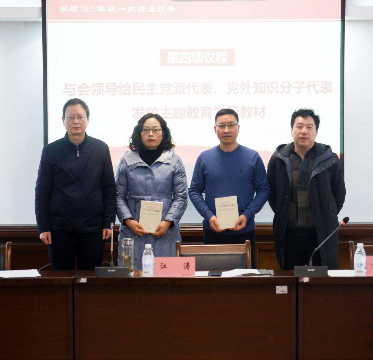 江涛在总结讲话中强调,党外人士是学院发展不可或缺的重要力量,学院党委一直高度重视统一战线工作。他提出三点希望,一是要持续强化理论武装,切实把思想和行动统一到党中央、省委、省政府的重大决策部署上来,坚持不懈用习近平新时代中国特色社会主义思想凝心聚魂,自觉做“两个确立”的坚决拥护者和“两个维护”的坚定实践者;二是要充分发挥统战力量,始终牢记落实立德树人根本任务,努力成为“好老师”“大先生”,继续发挥人才优势,积极投身到学院“双高”建设、中心工作、社会服务、教学改革和乡村振兴中,积极建言献策,为学院事业高质量发展贡献力量;三是要扎实做好统战工作,相关部门要认真吸纳落实与会人员提出的中肯意见建议,尽快搭建起党外知识分子联谊交流平台,进一步提升统战工作质量。