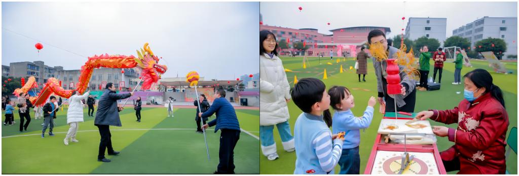 本次活动设置福龙贺岁、龙来进宝、福气连连等8个游园项目和写春联送福、糖画、舞龙等6个年味体验项目,并为参与活动的教职工准备有新春大礼品。为取得进步与成绩的2023年而庆贺,为充满生机与希望的2024年而祝福。