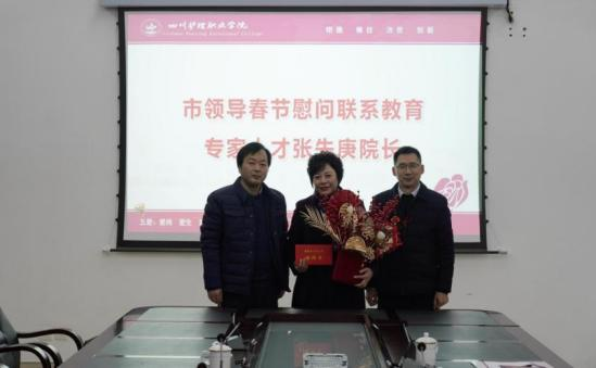 2月1日,德阳市人大常委会党组成员、秘书长何升元,德阳市教育局党组成员、副局长赵友未等一行4人到校走访慰问全国教书育人楷模、黄炎培职业教育杰出校长、享受国务院政府特殊津贴专家、德阳市教育专家人才张先庚教授。