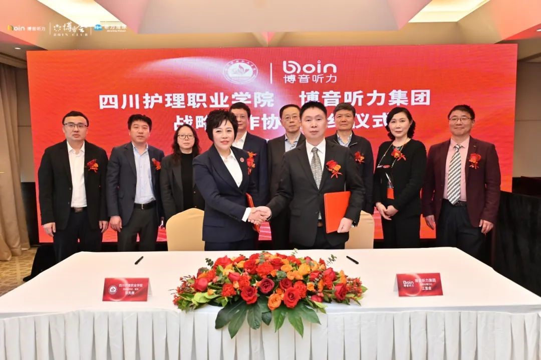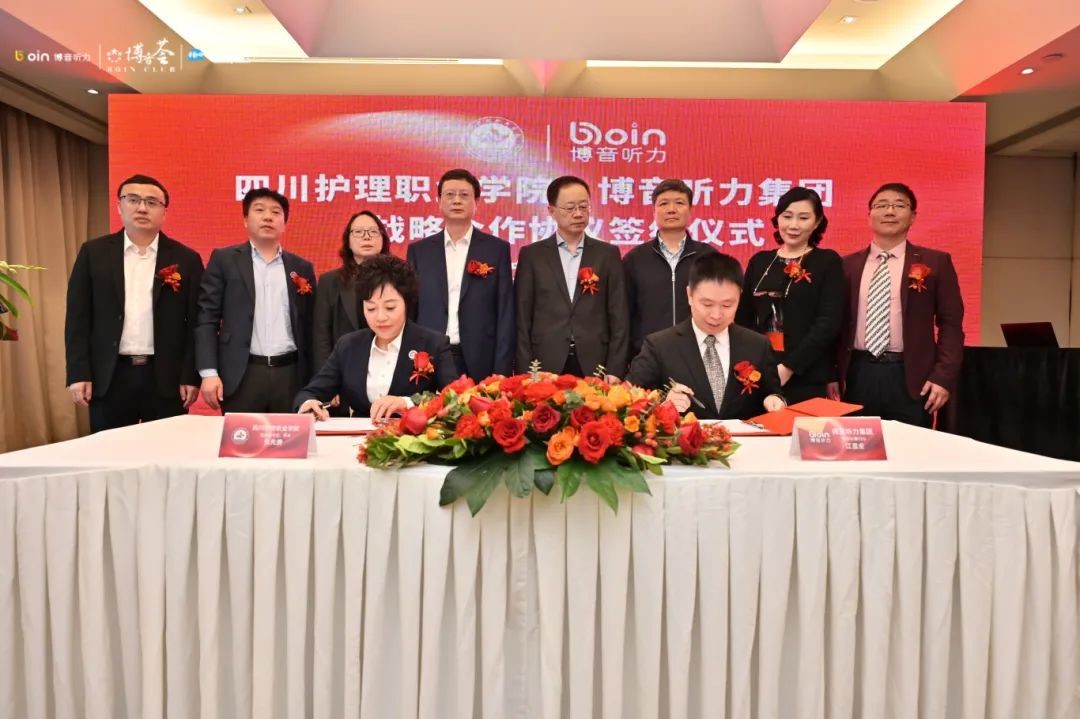 为贯彻落实党的二十大战略部署和全国两会精神,着力推进产教深度融合,扎实推动新质生产力在卫生健康行业和听力康复领域的应用,助推校企高质量发展,3月22日,beat365官方网站与博音听力有限公司签署战略合作协议,聚焦听力康复领域的人才培养、技术创新和社会服务,共同推动我国听力康复行业及产业发展。四川省卫生健康委员会科技教育处副处长龚俐、中国康复医学会听力康复专业委员会主席卢伟教授、中国康复医学会听力康复专业委员会秘书长王立群,学院党委书记江涛、党委副书记、院长张先庚教授,四川省残联原二级巡视员孟晓星、博音听力有限公司董事长兼CEO江显全等行业专家、学校代表80余人出席在四川锦江宾馆举行的签约仪式!仪式由学院党委书记江涛主持。