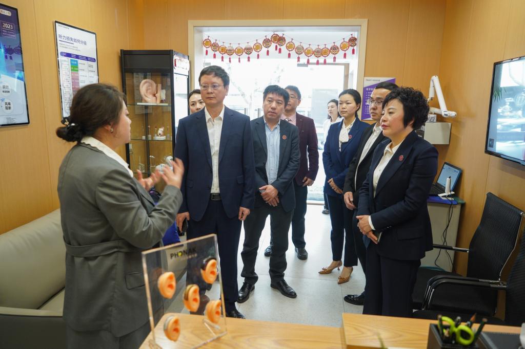 签约仪式后,江涛书记、张先庚院长一行参观了博音助听器成都旗舰店,深入考察助听器的研发、设备选择、验配调试等,张先庚教授结合现场考察,对博音听力康复产业学院提出了建设思路,并对下一步高效推进产业学院建设方案做了系统指导。