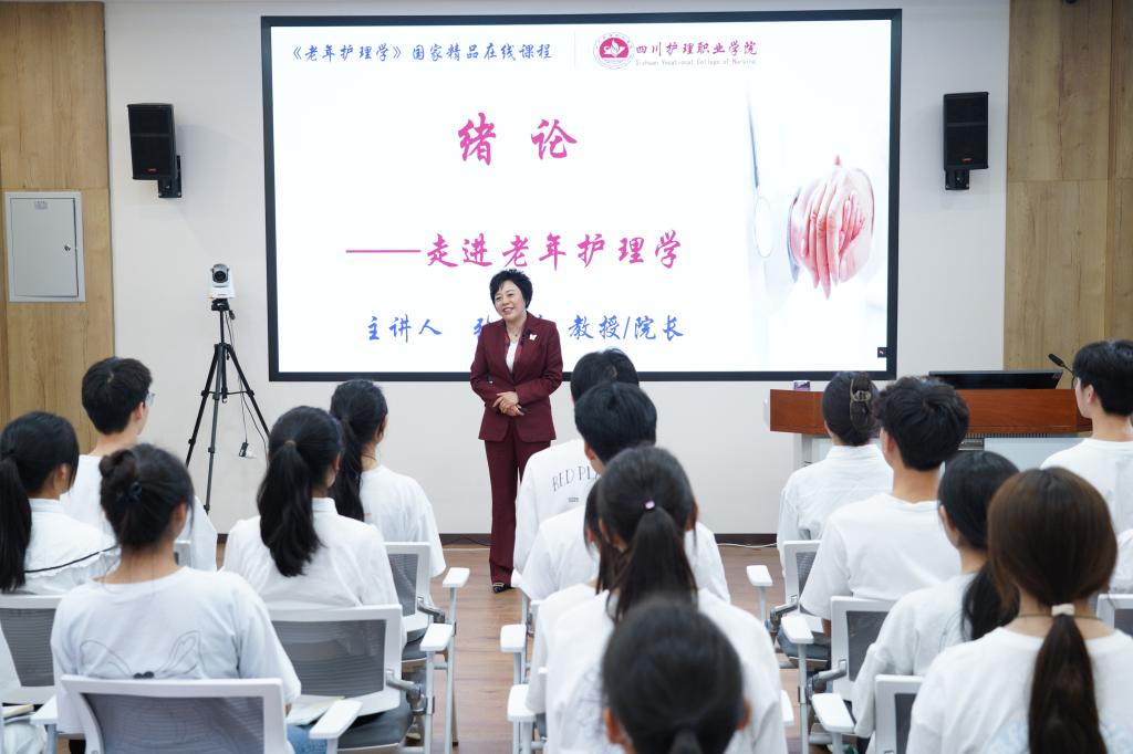 本次同步课堂由张先庚教授主讲,她获评“全国教书育人楷模”、首批“爱在西行”模范园丁教师,也是国家级在线精品课程《老年护理学》负责人。在云端课堂上,张先庚以任务为导向,以人口老龄化现状与趋势、养老政策、老年护理特点及工作要求为主线,结合真实案例和学院在老年护理人才培养方面的改革实践,融入思政元素,精心设计互动环节,应用智慧化教学手段,使三校学生充分融入课堂,教学内容丰富,深入浅出,课堂气氛活跃,让同学们在云端课堂亲历一场不一样的盛宴。课后,同学们纷纷表示:课堂内容精彩,重点突出,增长了知识,开阔了眼界,提升了职业素养。
