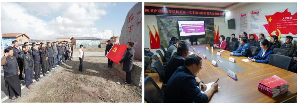 在定点帮扶点班佑村,张先庚院长代表学院机关第一党支部与班佑村党支部召开结对共建座谈会,听取村支部建设情况,带领全体党员重温入党誓词,赠送相关学习书籍,并结合乡村振兴实际,以“贯彻落实全国两会精神 凝心聚力共促乡村振兴”为题,为党员干部讲党课,激励他们加强党的理论学习,大力传承弘扬长征精神,团结奋进、埋头苦干、勇毅前行,走好班佑村的乡村振兴之路。