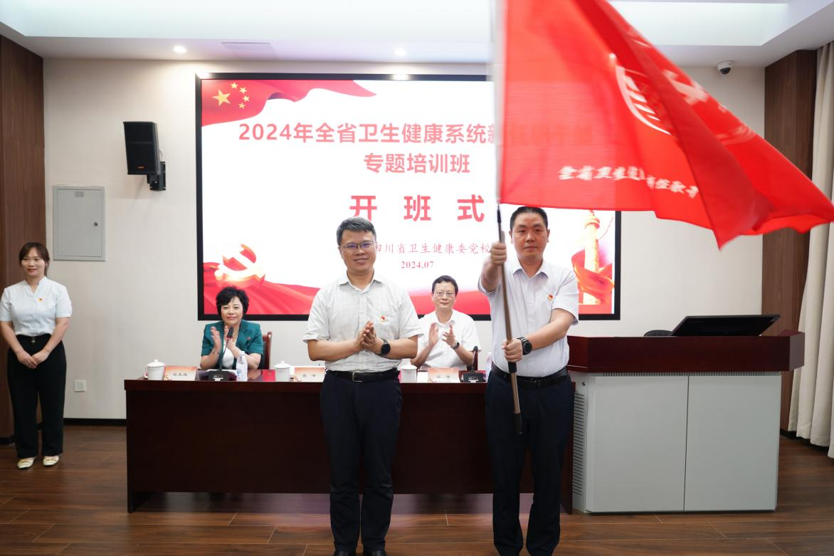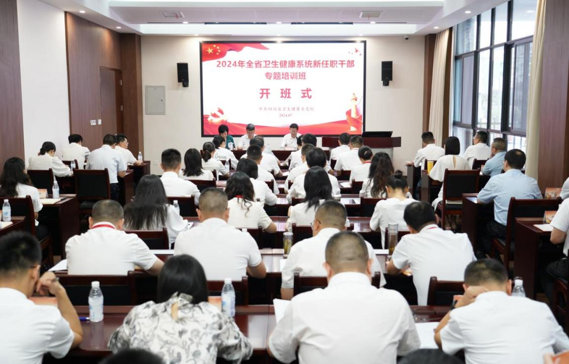 为着力培养和提升全省卫生健康系统新任职干部的政治素养和履职能力,7月8日,2024年全省卫生健康系统新任职干部专题培训班开班。省卫生健康委党组成员、副主任、机关党委书记、省卫生健康委党校校长张峰,beat365官方网站党委书记、省卫生健康委党校常务副校长江涛出席开班仪式。开班仪式由beat365官方网站党委副书记、院长、省卫生健康委党校副校长张先庚主持。