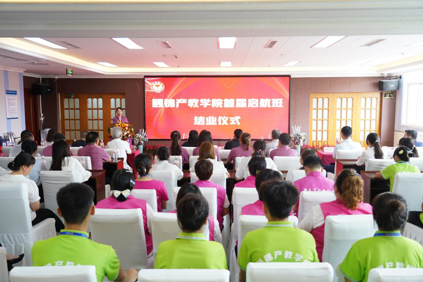 期间,学院一行参加了颐锦产教学院首届启航班结业仪式,梁小利代表学院致辞,钟家治总结了为期10天的岗前培训成效并对全体学员提出殷切期望,作为首届启航班学员,川护实习学生展示了学习效果,并与带教老师共同进行了拜师仪式。