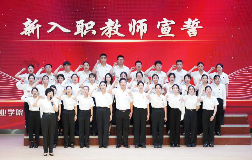 35名新入职教师在张先庚院长的带领下庄严宣誓。