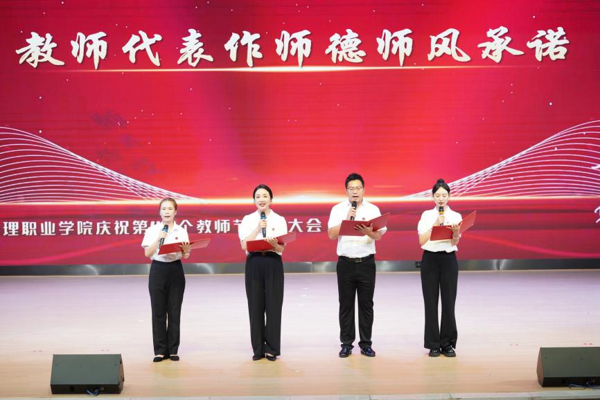 4名新入职教师代表全体教职员工作师德师风承诺。