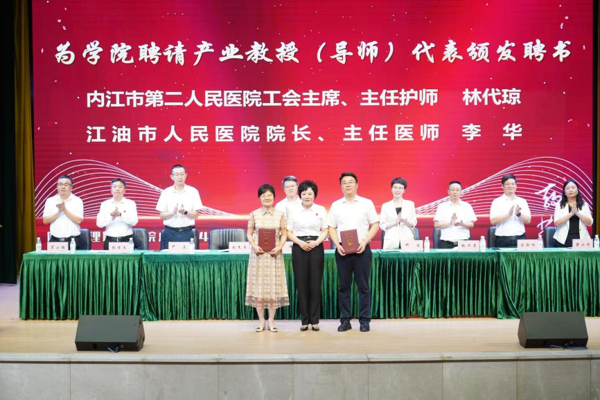 会上,为学院聘请的成都市首批产业教授(导师)代表林代琼、李华颁发聘书。他们和林琳、罗霞、王芃、戴睿共计6名成都市首批产业教授(导师)为推进学院产教深度融合提供了坚强保障。