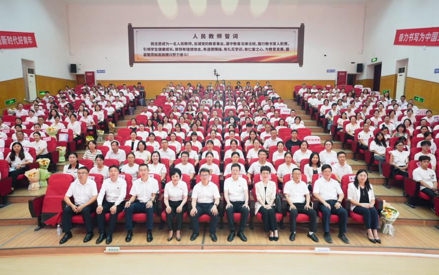 最后,江涛书记希望受到表彰的先进集体和个人,保持谦虚谨慎、不骄不躁的态度,在今后的工作中继续秉持初心,牢记使命,以更快的行动、更强的能力、更高的站位、更团结的作风,高质量推进各项工作。他希望全体教师以先进为榜样,扎根三尺讲台,潜心教书育人,以赤诚之心、奉献之心、仁爱之心投身教育事业。他要求大家要牢记习近平总书记的殷切嘱托,大力弘扬教育家精神,牢固树立“躬耕教坛、强国有我”信念,努力培养更多高素质技能型卫生健康人才,奋力书写好教育强国建设的“强师”答卷,为推进中国式现代化建设贡献“川护”力量。