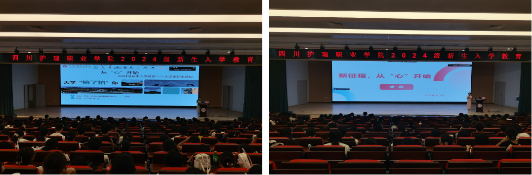 关注心理健康 拥抱美好未来。心理健康教育中心教师罗瑶与思政部教师唐燕分别以“新生心理健康适应性教育”“新征程,从‘心’开始”为主题,聚焦新生心理健康主线,从学院心理健康教育中心、学生心理咨询方式、新生适应大学新环境方法、学生心理自我调适等方式做了详细的介绍,鼓励全体新生积极面对挑战,以更加饱满的精神和身心状态迎接新的大学生活。
