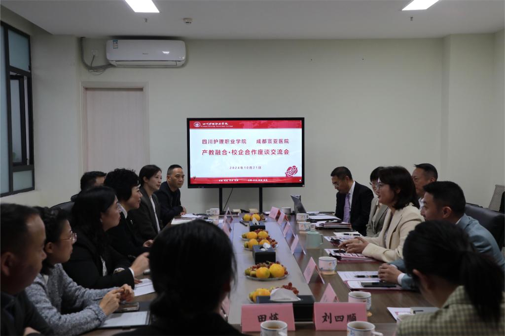 学院教务处、招生就业处、产教学院、护理系、医疗技术系、康复技术系相关负责人随同调研,成都寰亚医院董事长助理何卫兵、副院长陈志恒等参加座谈。